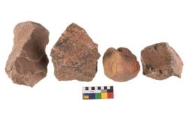 | Description / विवरण | Specimen of flake tools with prominent flaking marks. |
