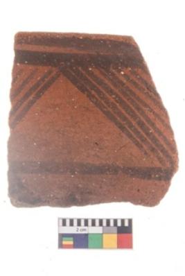 | Description / विवरण | Specimen of potsherd with black decorative geometric painting . |