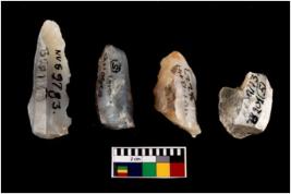 | Description / विवरण | Specimen of a fluted cores with few broad fluted marks indicating the detached blades from it. Some of them are tapering at one end. |