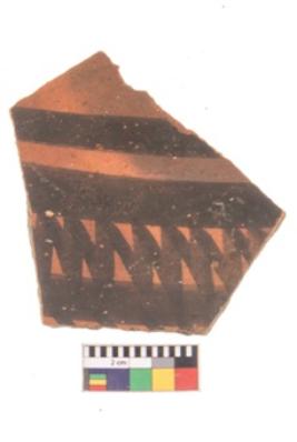 | Description / विवरण | Specimen of potsherd with black decorative geometric painting. |