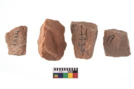 | Description / विवरण | Specimen of flake tools with prominent flaking marks. |
