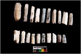 | Description / विवरण | There are n-20 blades with retouched sides. Out of them 12 are made up of Chalcedony and 8 are made up of Chert. Some of them are blunted back blades, crescent and truncated blades. |