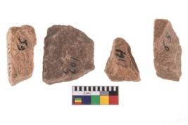 | Description / विवरण | Specimen of flake tools with prominent flaking marks. |