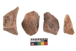 | Description / विवरण | Specimen of flake tools with prominent flaking marks. |