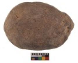 | Description / विवरण | Specimen of a hammerstone with battered periphery along with the circumference. |