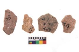 | Description / विवरण | Specimen of flake tools with prominent flaking marks. |