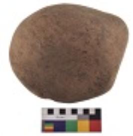 | Description / विवरण | Specimen of a hammerstone with battered periphery along with the circumference. |