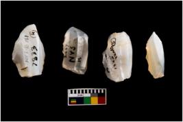 | Description / विवरण | Specimen of a fluted cores with few broad fluted marks indicating the detached blades from it. Some of them are tapering at one end. |