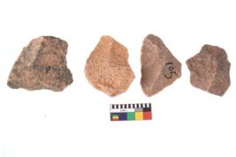 | Description / विवरण | Specimen of flake tools with prominent flaking marks. |