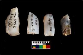 | Description / विवरण | Specimen of a fluted cores with few broad fluted marks indicating the detached blades from it. Some of them are tapering at one end. |