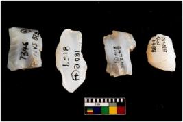 | Description / विवरण | Specimen of a fluted cores with few broad fluted marks indicating the detached blades from it. Some of them are tapering at one end. |
