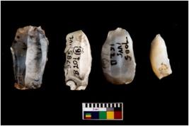 | Description / विवरण | Specimen of a fluted cores with few broad fluted marks indicating the detached blades from it. Some of them are tapering at one end. |