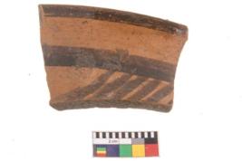 | Description / विवरण | Specimen of potsherd with black decorative geometric painting. |