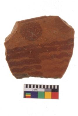 | Description / विवरण | Specimen of Red on red ware potsherd with having red decorative geometric painting. . |