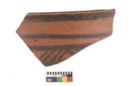 | Description / विवरण | Specimen of potsherd with black decorative geometric painting. |