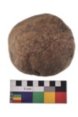 | Description / विवरण | Specimen of a hammerstone with battered periphery along with the circumference. |