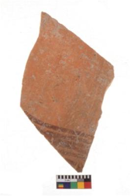 | Description / विवरण | Specimen of potsherd with decorative geometric painting. Type Black on Red Ware . |
