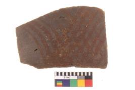 | Description / विवरण | Specimen of potsherd with decorative geometric painting. Type Black on Red Ware . |