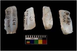 | Description / विवरण | Specimen of a fluted cores with few broad fluted marks indicating the detached blades from it. Some of them are tapering at one end. |
