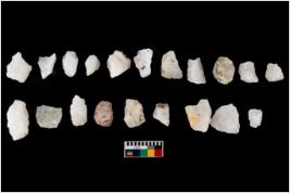 | Description / विवरण | Specimen of cores with fewfluted marks indicating the detached blades from it. Some of them are tapering at one end. Most of them have sharp edges. |