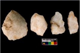 | Description / विवरण | Specimen of a cores with several broad fluted marks. The reverse bulb and platform can be seen. The flake scars are seen on all sides. |