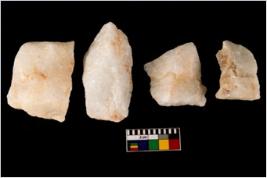 | Description / विवरण | Specimen of a cores with several broad fluted marks. The reverse bulb and platform can be seen. The flake scars are seen on all sides. |