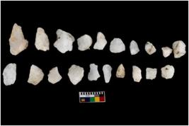 | Description / विवरण | Specimen of cores with fewfluted marks indicating the detached blades from it. Some of them are tapering at one end. Most of them have sharp edges. |