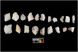 | Description / विवरण | Specimen of cores with fewfluted marks indicating the detached blades from it. Some of them are tapering at one end. Most of them have sharp edges. |