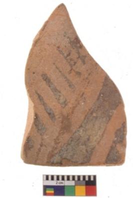 | Description / विवरण | Specimen of potsherd with decorative geometric painting. Type Black on Red Ware . |