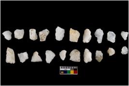 | Description / विवरण | Specimen of cores with fewfluted marks indicating the detached blades from it. Some of them are tapering at one end. Most of them have sharp edges. |