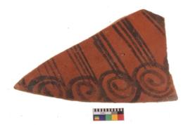 | Description / विवरण | Specimen of potsherd with decorative geometric painting. Type Black on Red Ware . |