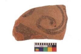 | Description / विवरण | Specimen of potsherd with decorative geometric painting. Type Black on Red Ware . |