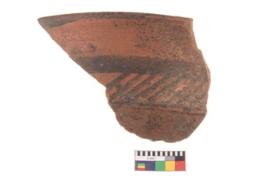| Description / विवरण | Specimen of potsherd with black decorative geometric painting. |