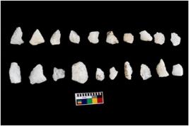 | Description / विवरण | Specimen of cores with fewfluted marks indicating the detached blades from it. Some of them are tapering at one end. Most of them have sharp edges. |