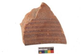 | Description / विवरण | Specimen of Red on red ware potsherd with having red decorative geometric painting. |