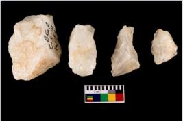 | Description / विवरण | Specimen of a cores with several broad fluted marks. Some of them are tapering at one end. |