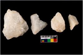 | Description / विवरण | Specimen of a cores with several broad fluted marks. Some of them are tapering at one end. |