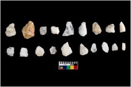 | Description / विवरण | Specimen of cores with fewfluted marks indicating the detached blades from it. Some of them are tapering at one end. Most of them have sharp edges. |