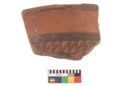 | Description / विवरण | Specimen of potsherd with black decorative geometric painting. |
