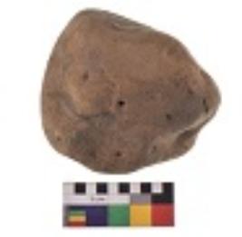 | Description / विवरण | Specimen of a hammerstone with battered periphery along with the circumference. |