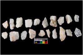 | Description / विवरण | Specimen of cores with fewfluted marks indicating the detached blades from it. Some of them are tapering at one end. Most of them have sharp edges. |