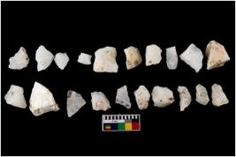 | Description / विवरण | Specimen of cores with fewfluted marks indicating the detached blades from it. Some of them are tapering at one end. Most of them have sharp edges. |
