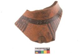 | Description / विवरण | Specimen of potsherd with black decorative geometric painting. |