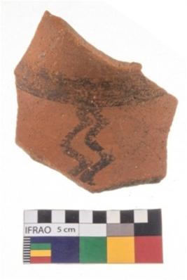 | Description / विवरण | Specimen of potsherd with black decorative geometric painting. |