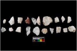 | Description / विवरण | Specimen of cores with fewfluted marks indicating the detached blades from it. Some of them are tapering at one end. Most of them have sharp edges. |