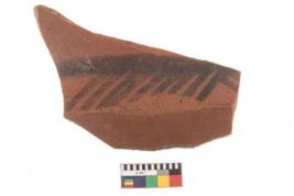 | Description / विवरण | Specimen of potsherd with black decorative geometric painting. |
