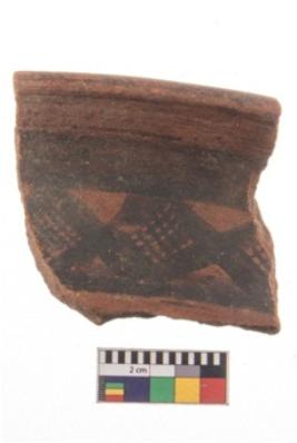 | Description / विवरण | Specimen of potsherd with black decorative geometric painting. |