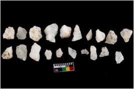 | Description / विवरण | Specimen of cores with fewfluted marks indicating the detached blades from it. Some of them are tapering at one end. Most of them have sharp edges. |