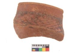 | Description / विवरण | Specimen of potsherd with black decorative geometric painting. |
