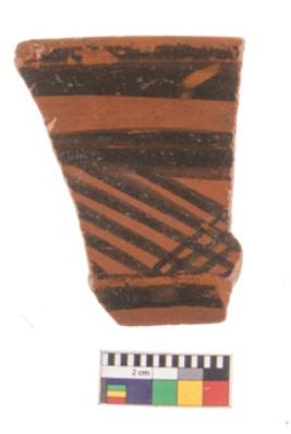 | Description / विवरण | Specimen of potsherd with black decorative geometric painting. |